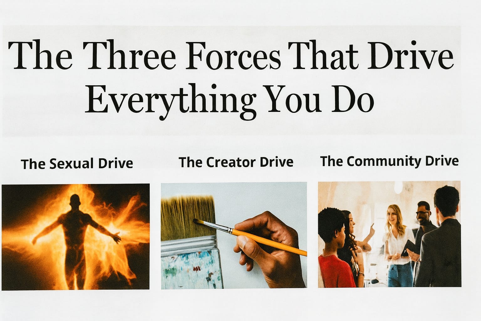Beneath all our goals, ambitions, and daily choices lie three fundamental drives that have shaped human behavior since the beginning of our species. These aren’t learned behaviors or cultural constructs. They’re hardwired into who we are.